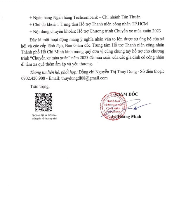 – Địa điểm nhận vé xe tại các văn phòng Trung tâm Hỗ trợ thanh niên công nhân: