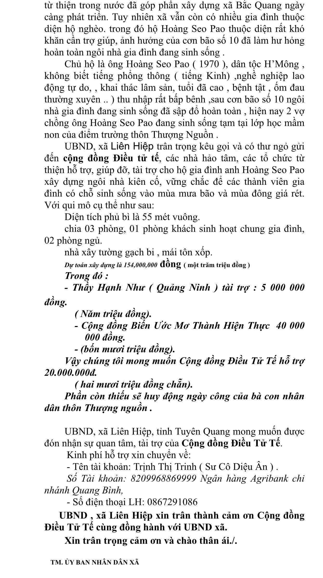🌿 LỜI KÊU GỌI ỦNG HỘ XÂY NHÀ CHO GIA ĐÌNH ÔNG HOÀNG SEO PAO – THÔN THƯỢNG NGUỒN, TUYÊN QUANG 🌿