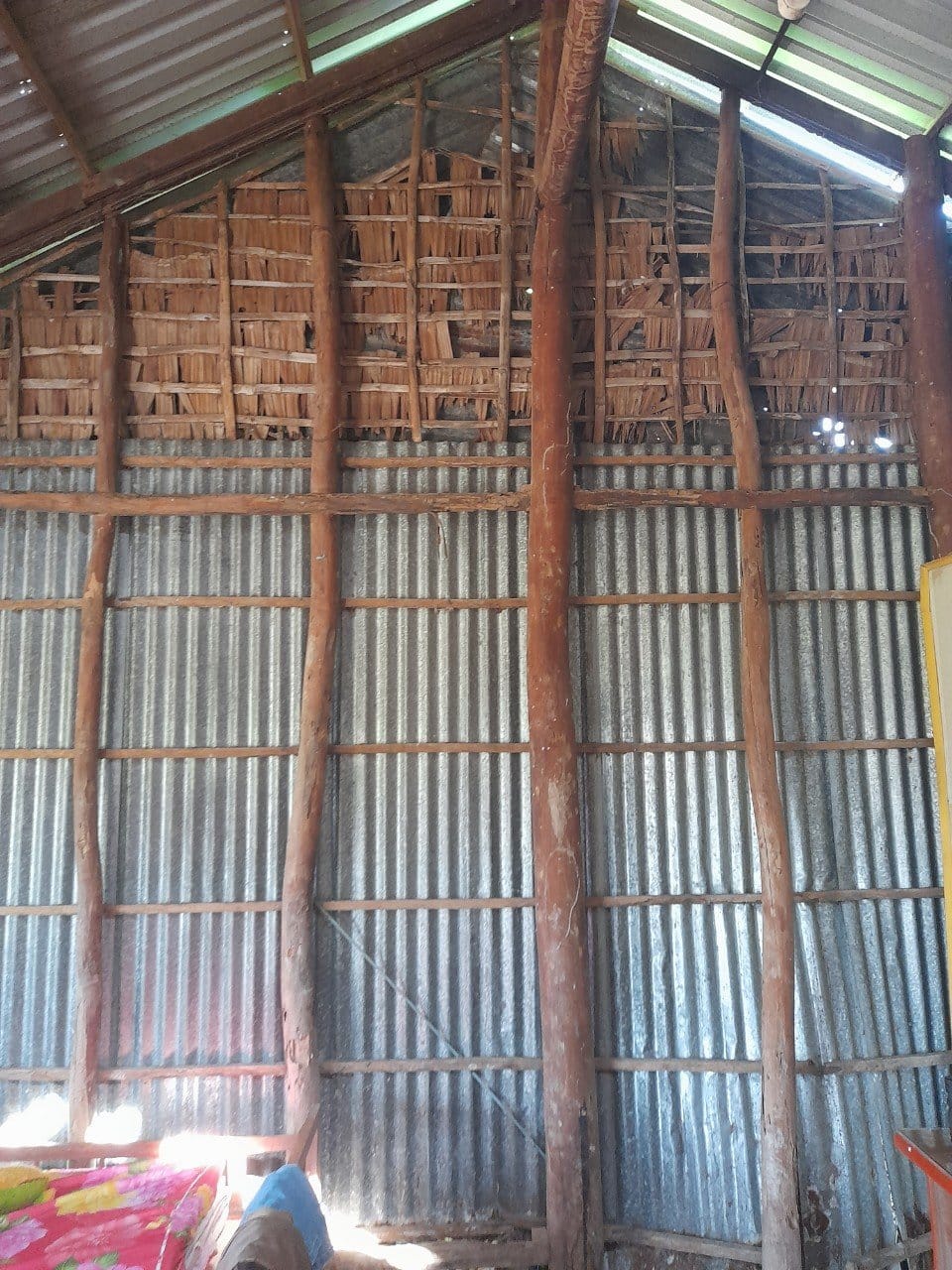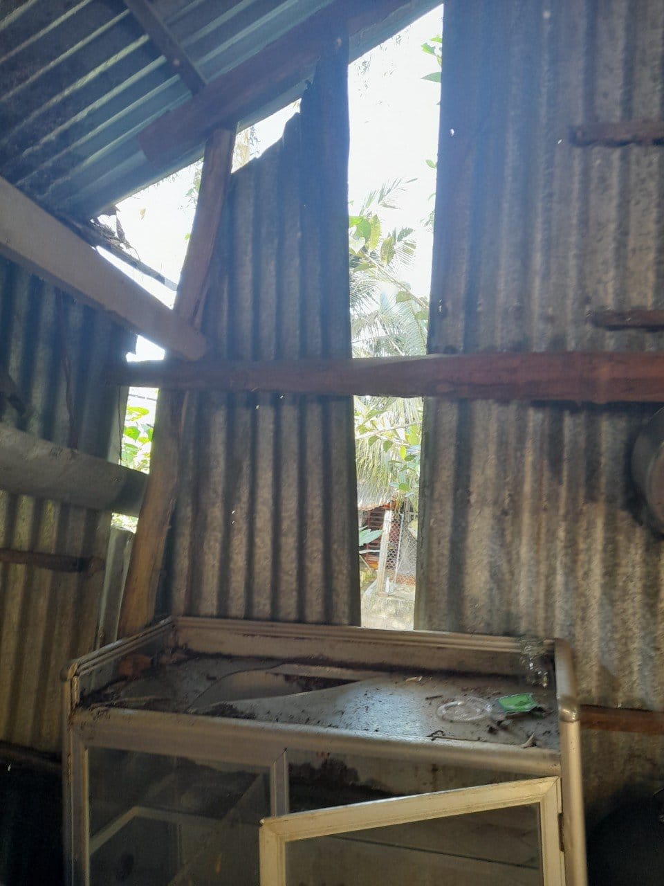 Hiện trạng ngôi nhà mái tôn mục nát, dột nát ướt hết cả vào mùa mưa nước ngập và trong nhà, ngoài vách nhà siêu vẹo sắp đổ sập. Gia đình kinh tế khó khăn nhưng vẫn lo cho cháu trai ăn học. Kính mong chương trình từ thiện giúp đỡ gia đình bà cụ Nguyễn Thị Hiền được mái ấm an cư kín nắng kín mưa.