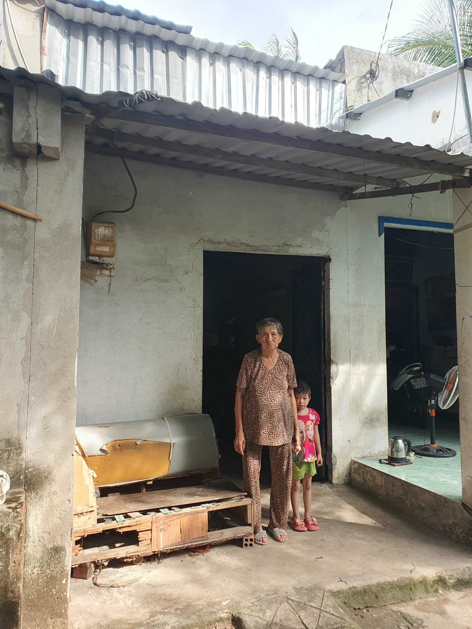 Hiện tại gia đình bà thuộc diện hộ khó khăn của khu phố 2 và có nhà ở bị dột nát, xuống cấp. Hai vách bên của nhà, Bà mượn tạm vách của nhà háng xóm, nhà chỉ có mái tôn phía trên, không có toilet