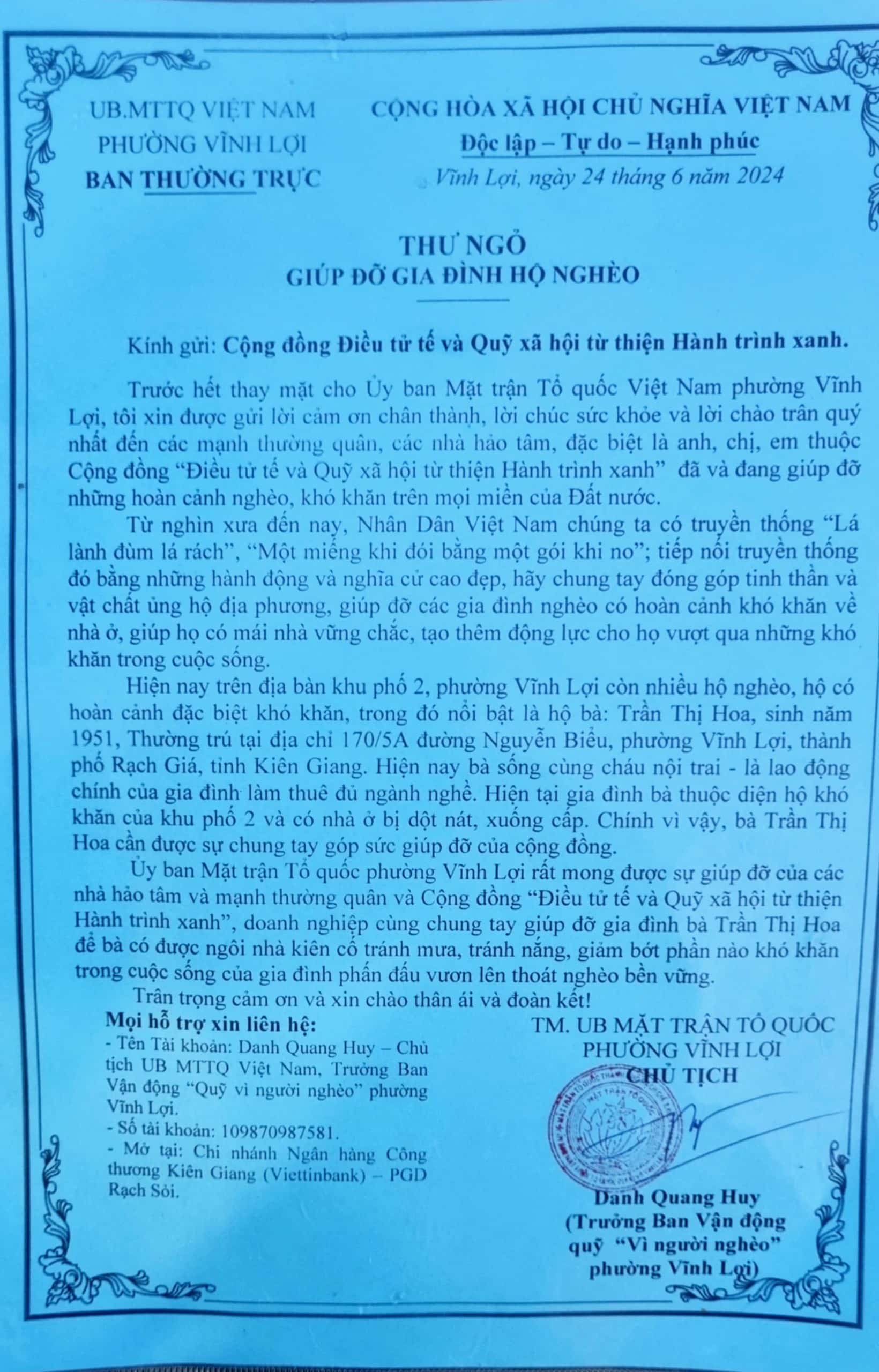 Chính vì vậy, rất mong nhận được sự chung tay góp sức giúp đỡ của cộng đồng để cho gia đình Bà có mái ấm ổn định để sống vui cùng các cháu của Bà